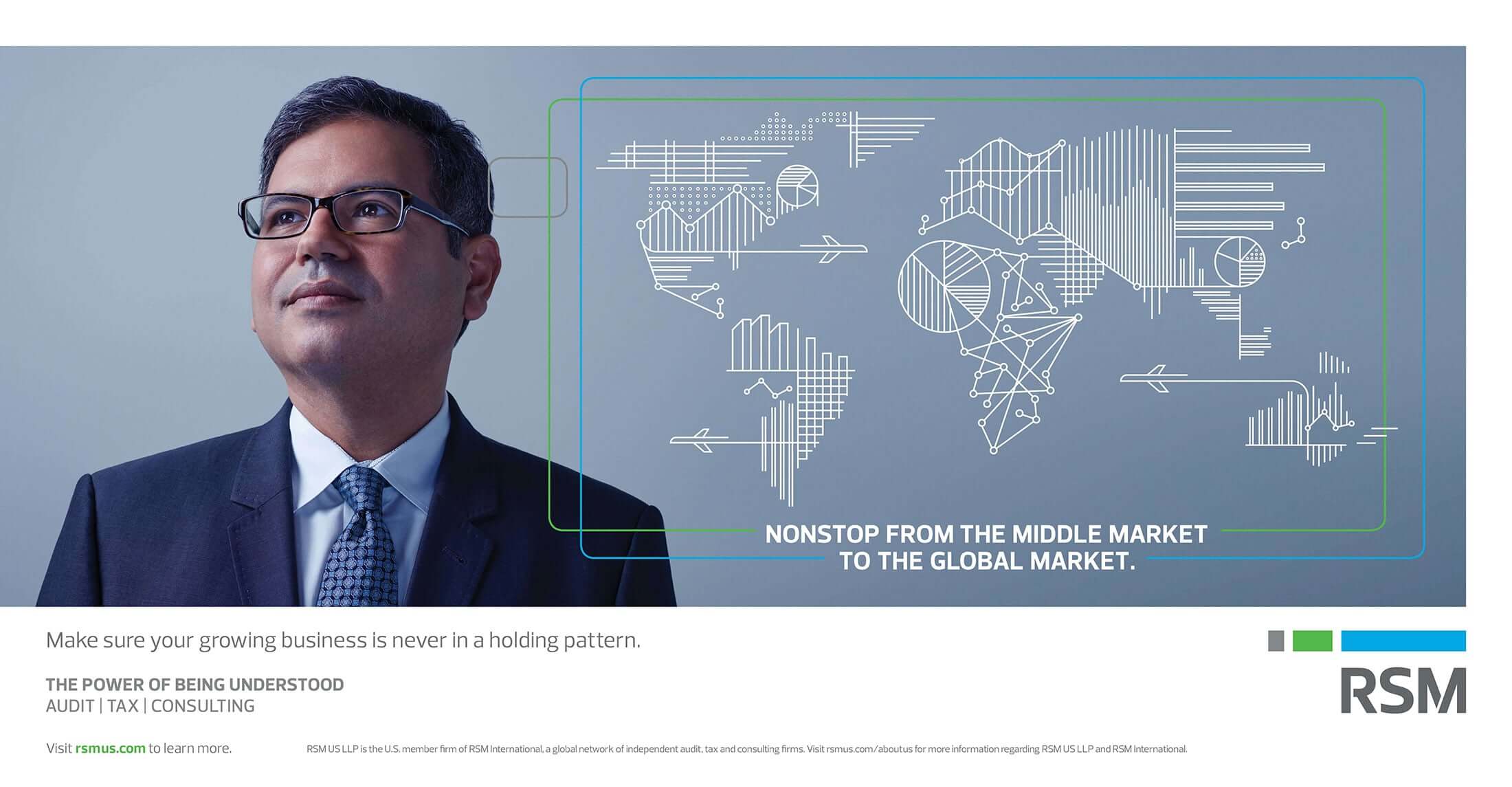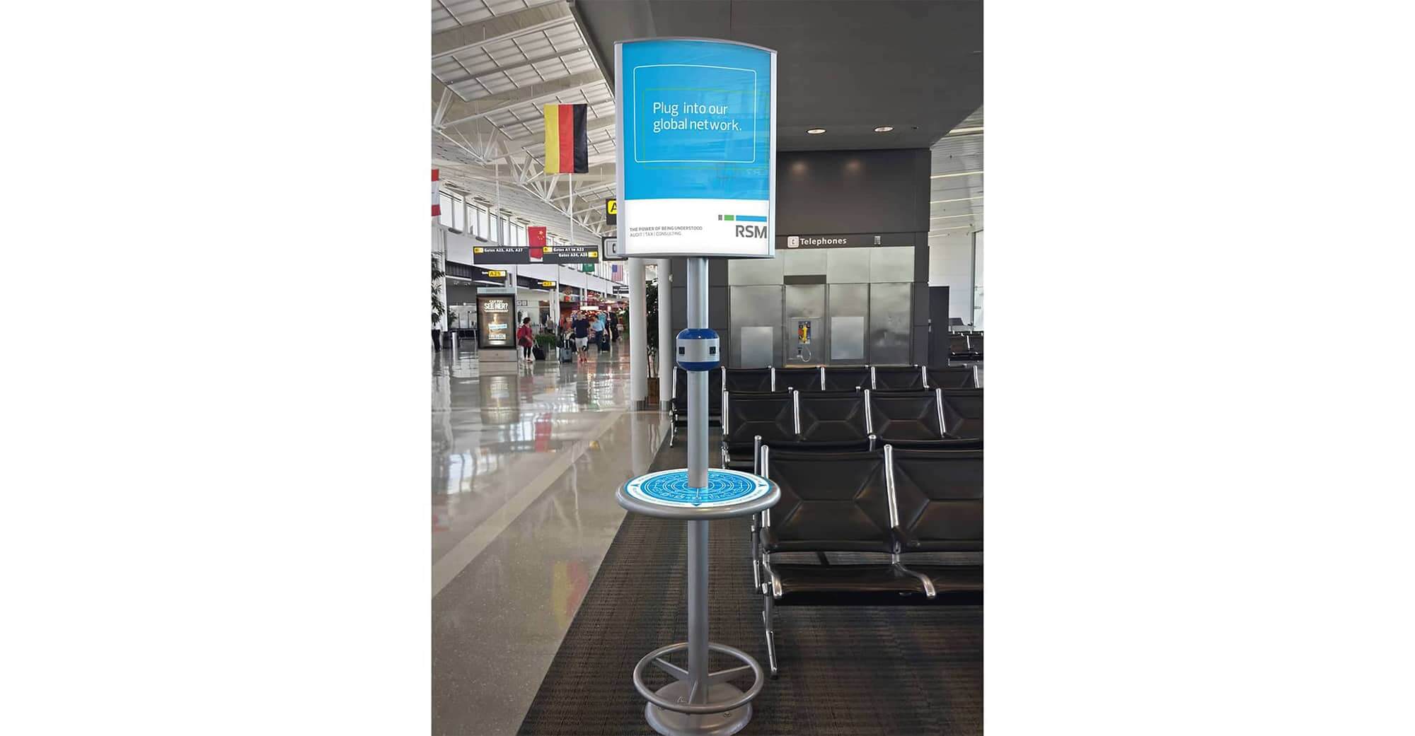 Large duratrans posters, mobile charging stations and escalator wraps filled the international sections of Dulles and Reagan airports in Washington, D.C., reinforcing RSM’s status as the leading audit, tax and consulting firm for middle market companies around the globe.