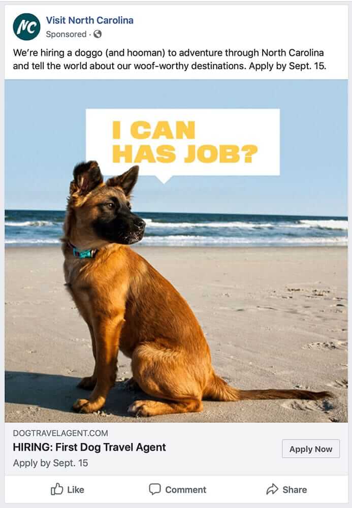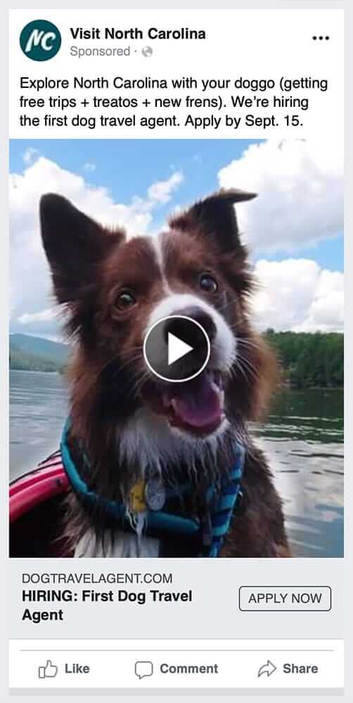 Our pupper-focused campaign to find the first-ever Dog Travel Agent looks to spark more visits to North Carolina by doggos and their hoomans.