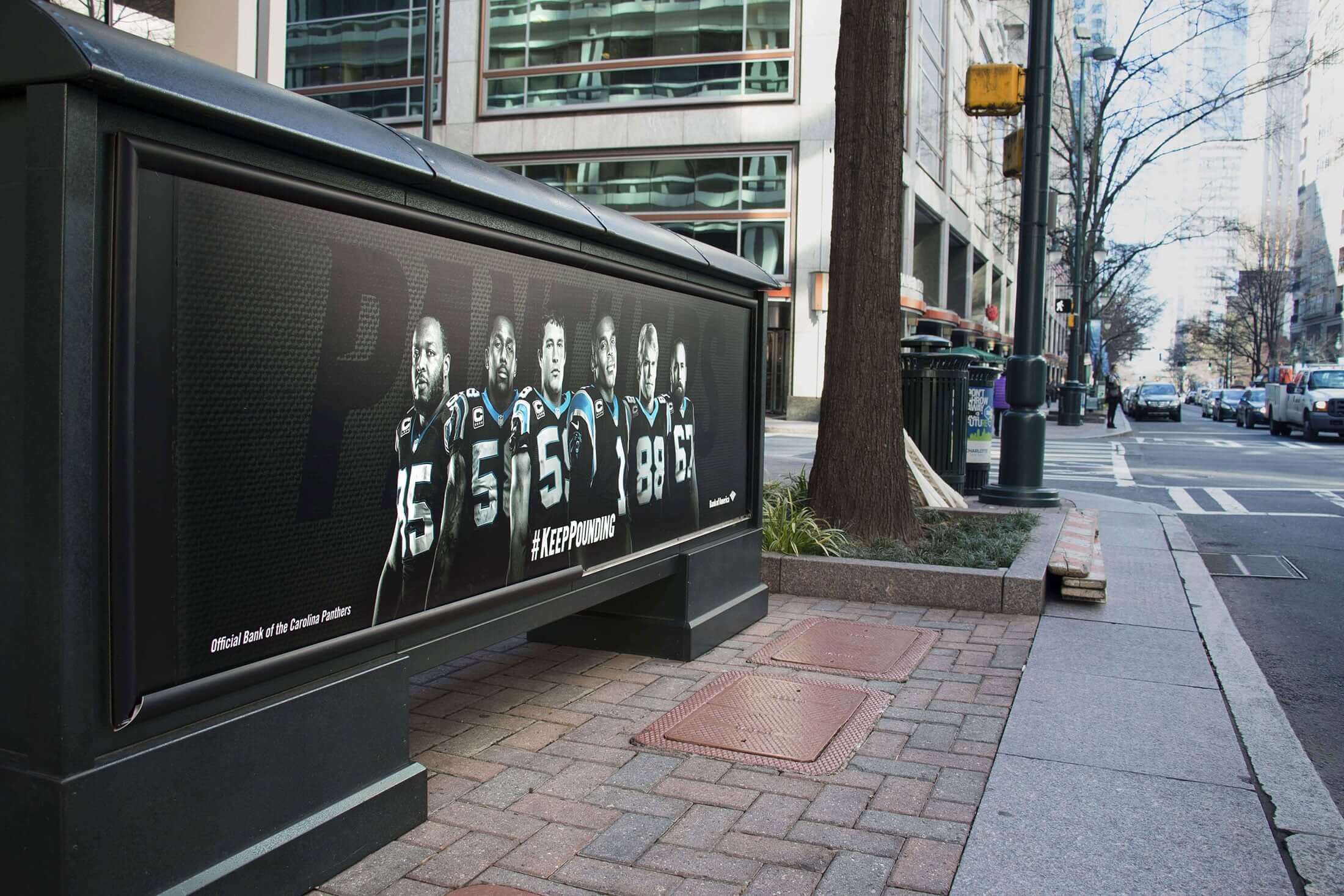As fans rallied around the team for the home playoff games in Charlotte, several huge #KeepPounding banners were developed and displayed by construction cranes. Bus shelter posters, digital outdoor and newsstand displays were also spread all over Uptown.
