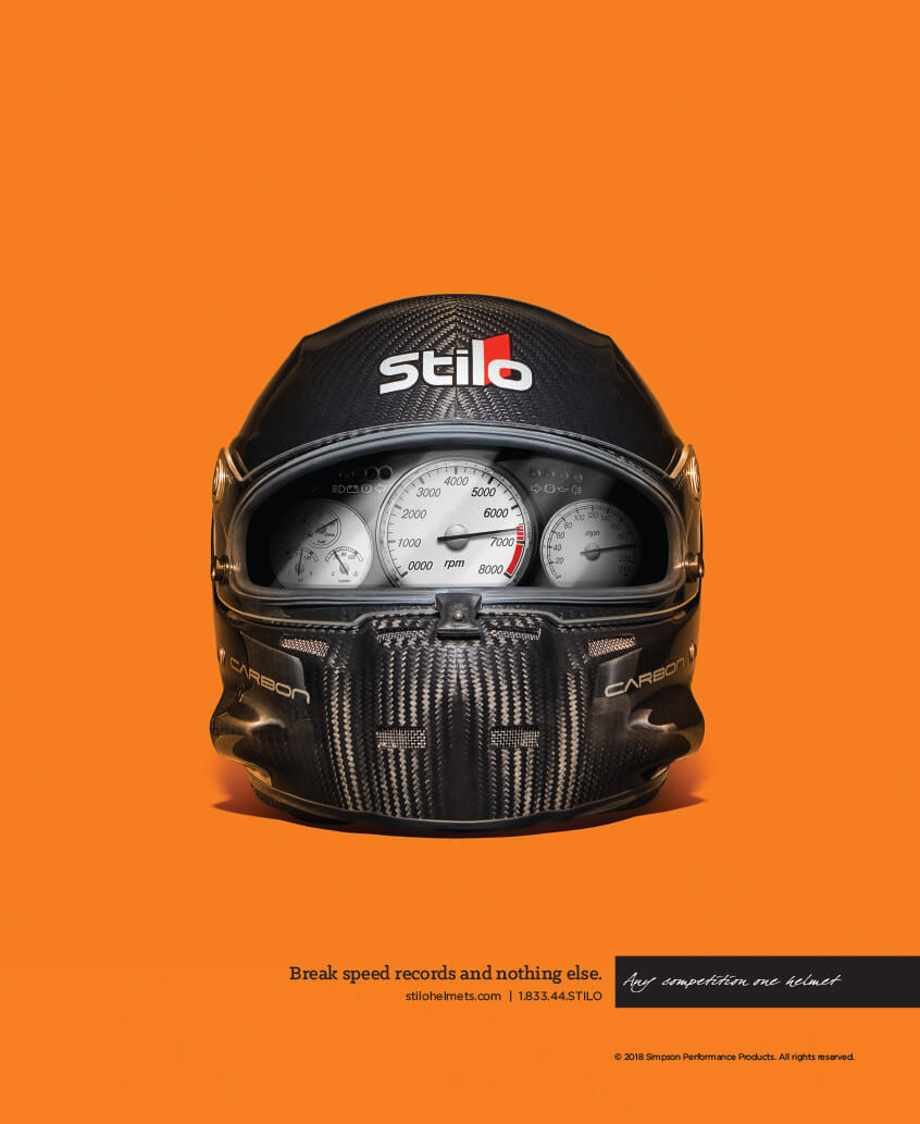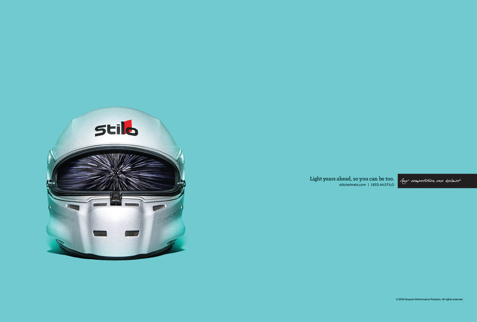 This print campaign highlights the superiority of these Italian-designed helmets as well as the competitiveness of the drivers. With the Stilo helmet, drivers can race faster and get the competitive advantage.